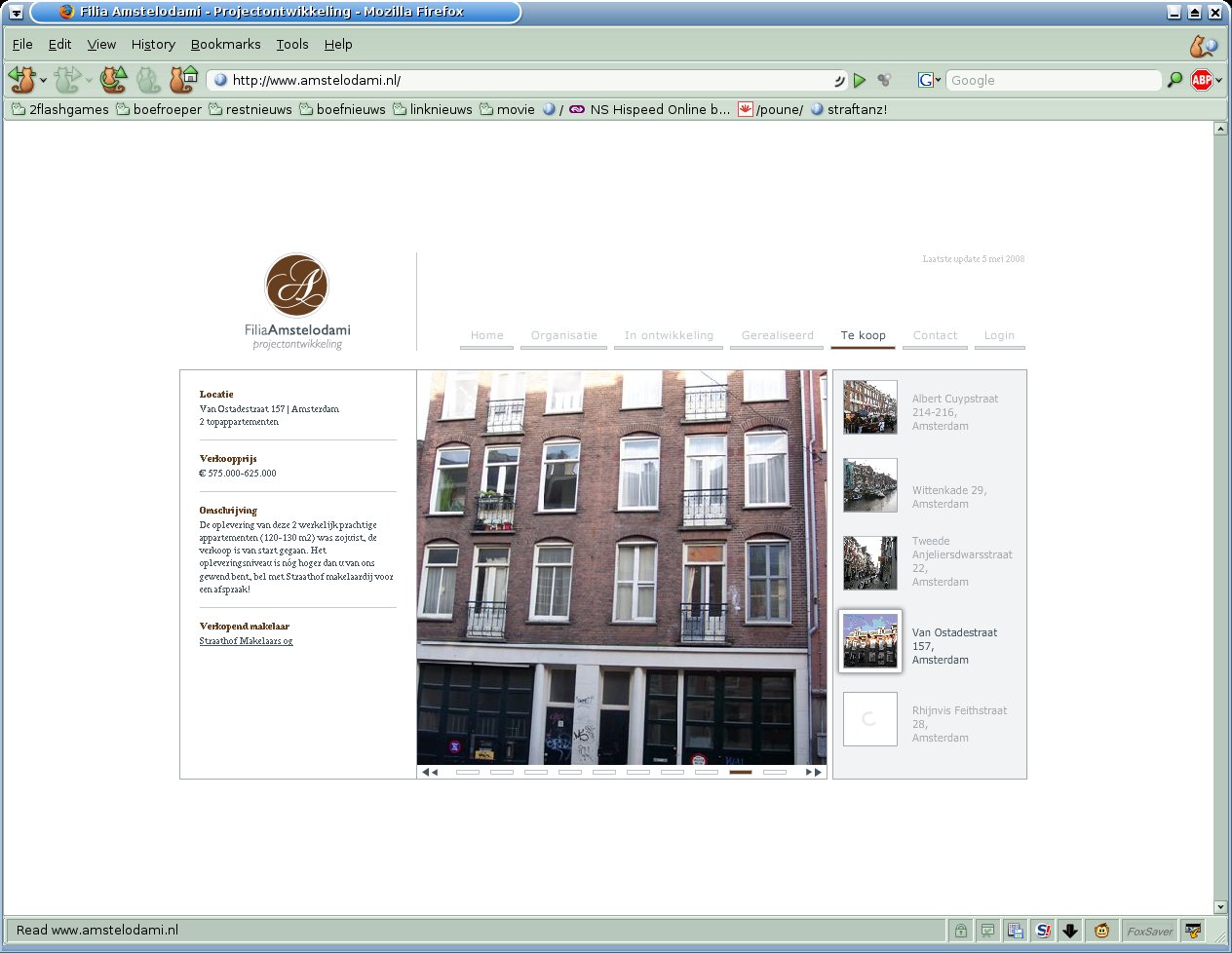 | 28 feb 2008 | Levering van bovengenoemde etages van Hado Ontwikkeling B.V. aan Filia Prima Amstelodami (Eerste Dochter van Amsterdam) B.V., voor 1.025.000,00 euro. |